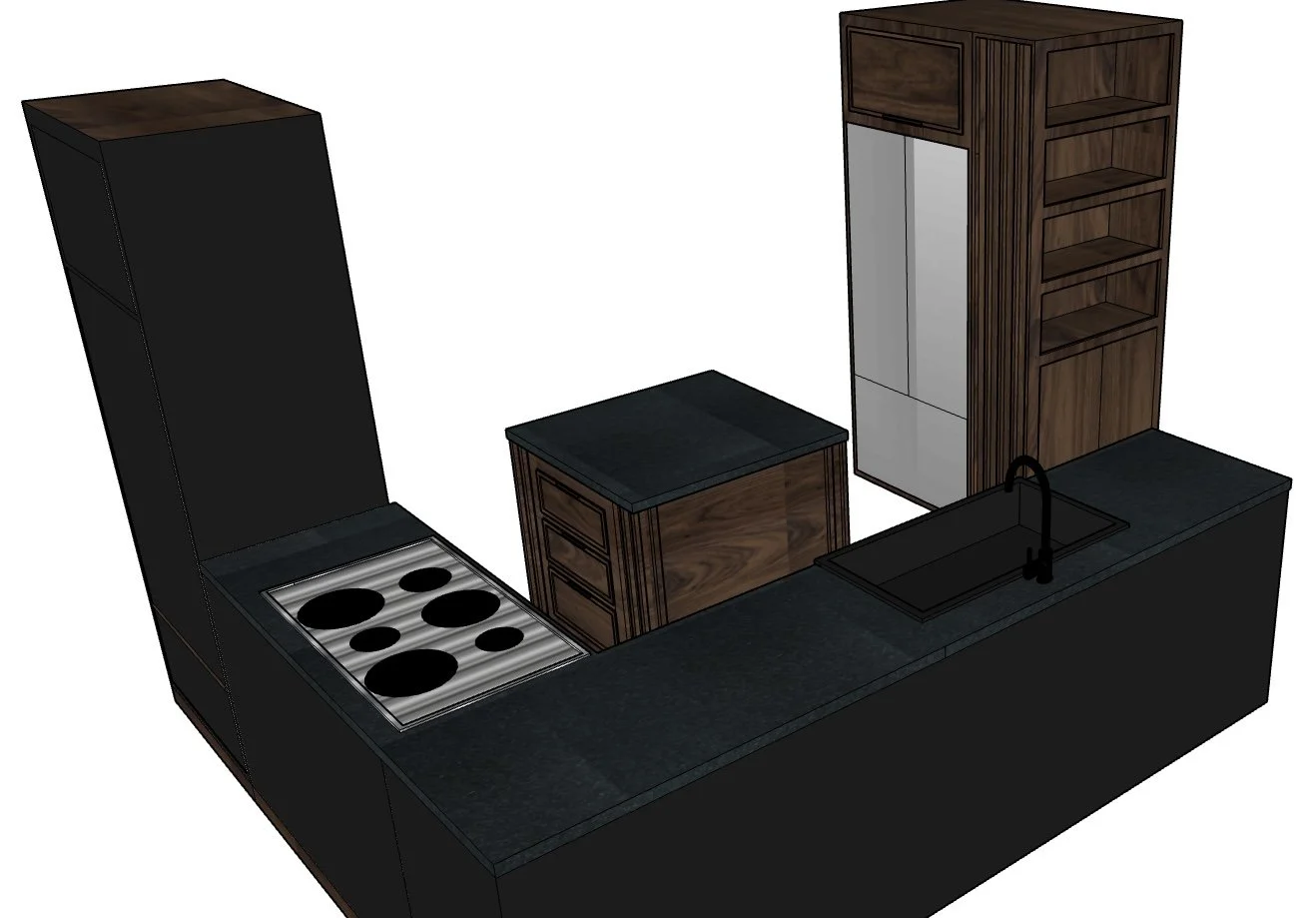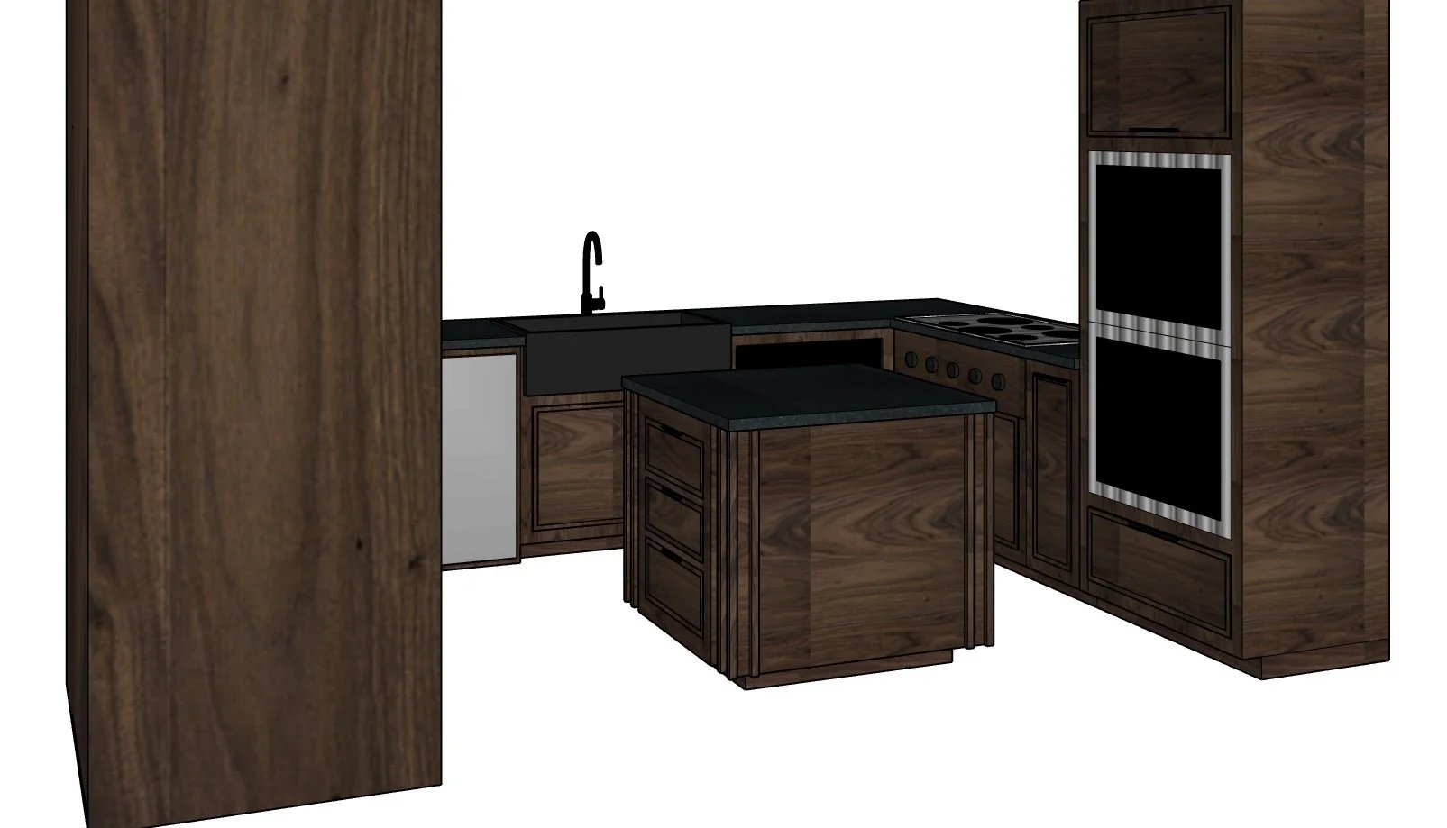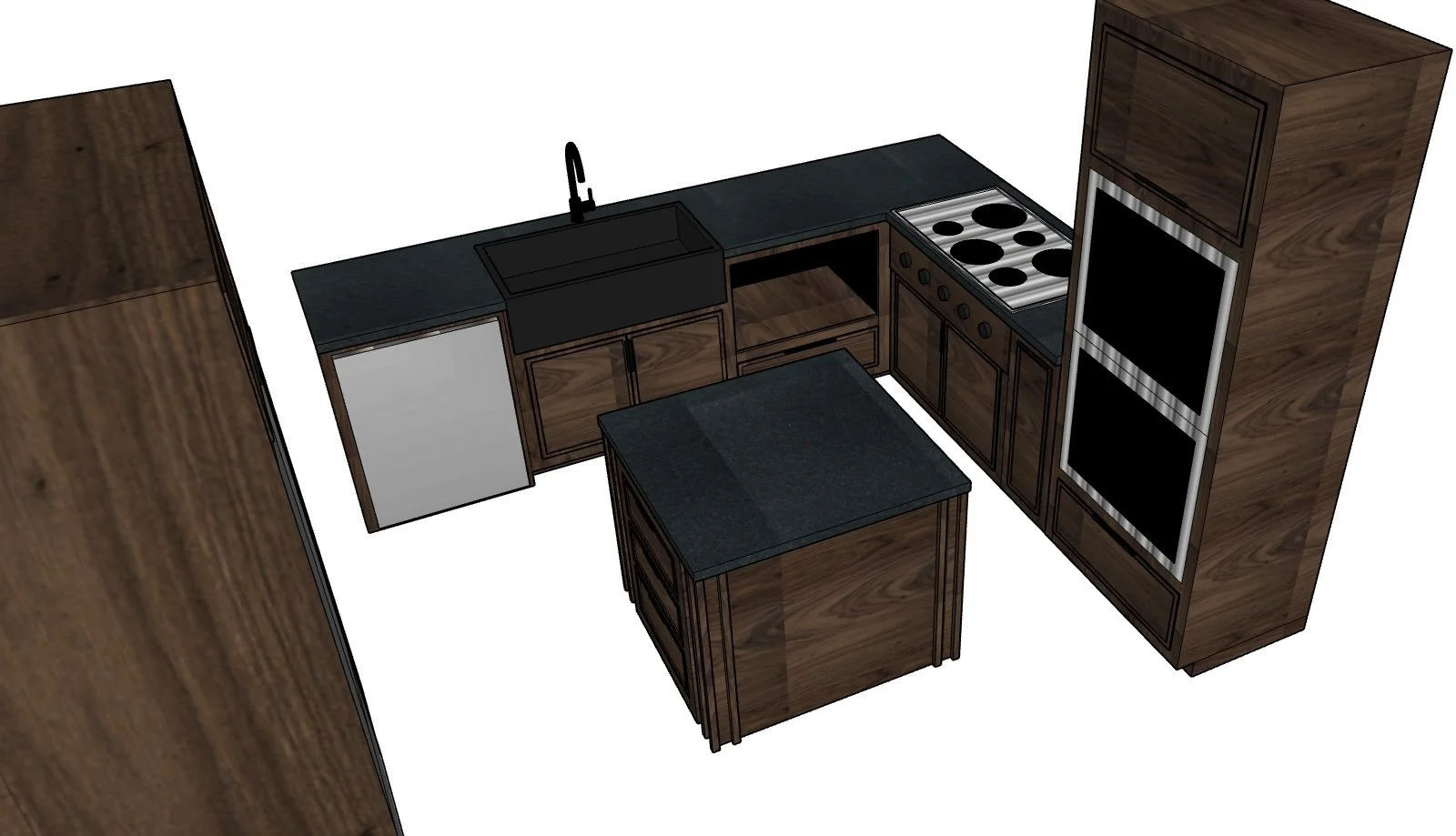 Custom designed and built walnut kitchen