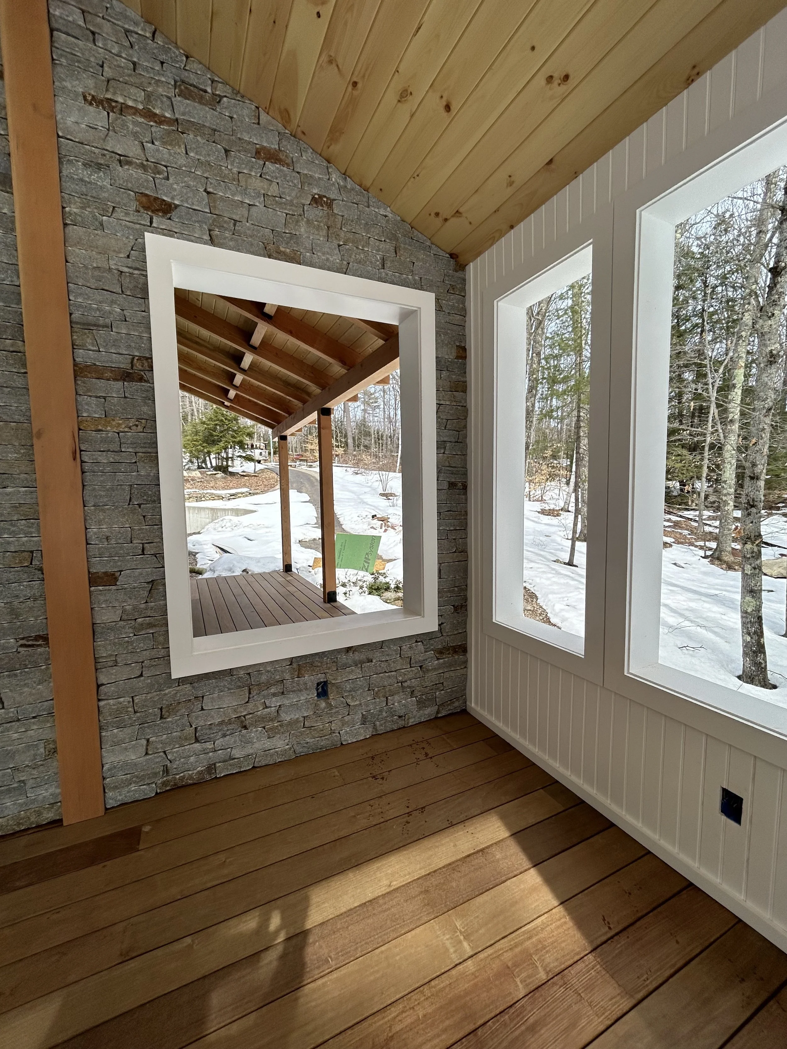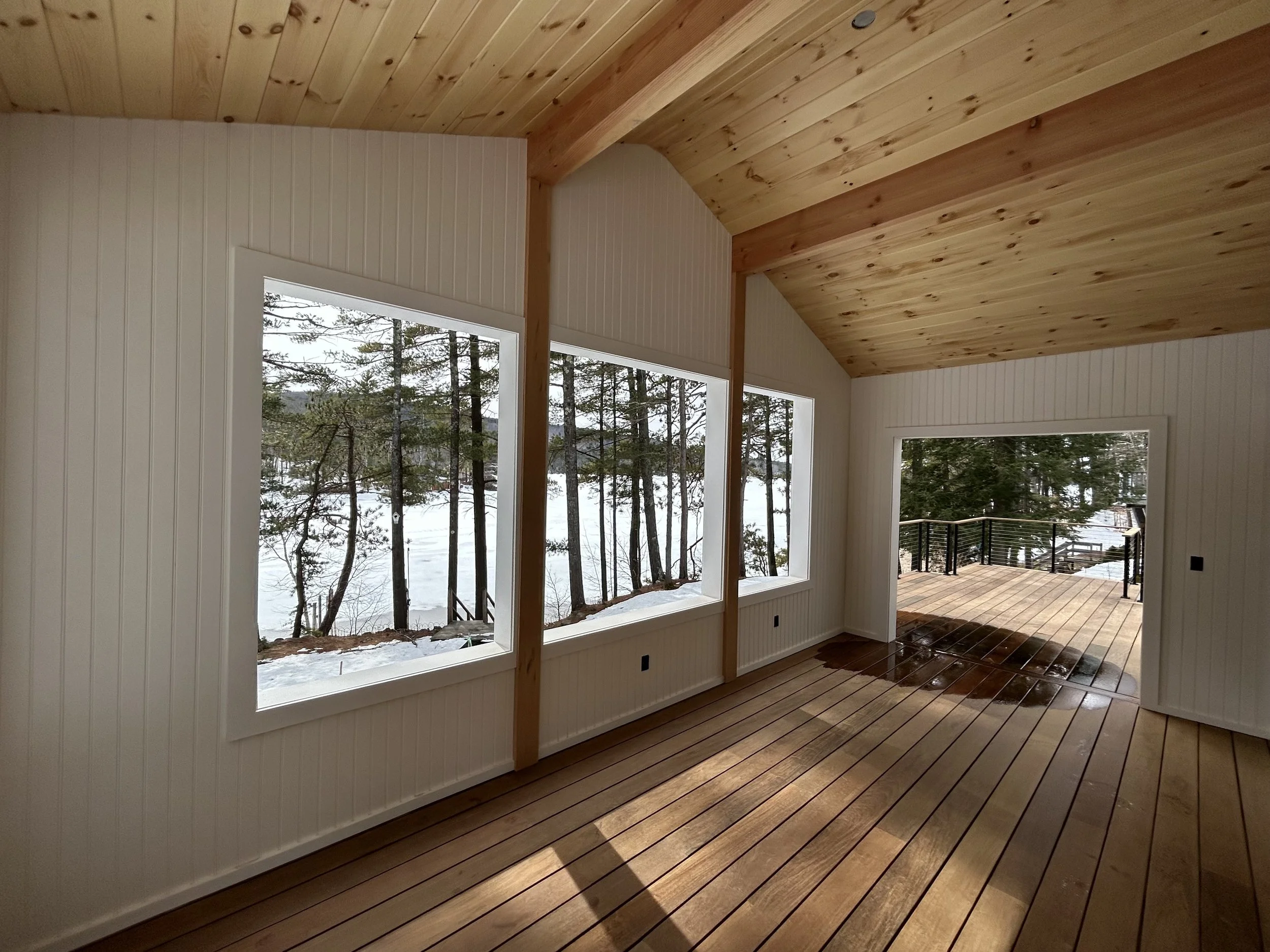 Screen Porch - Interior Ipe Decking, Azek Beadboard, Pine T&G Ceiling, and Doug. Fir Timbers.