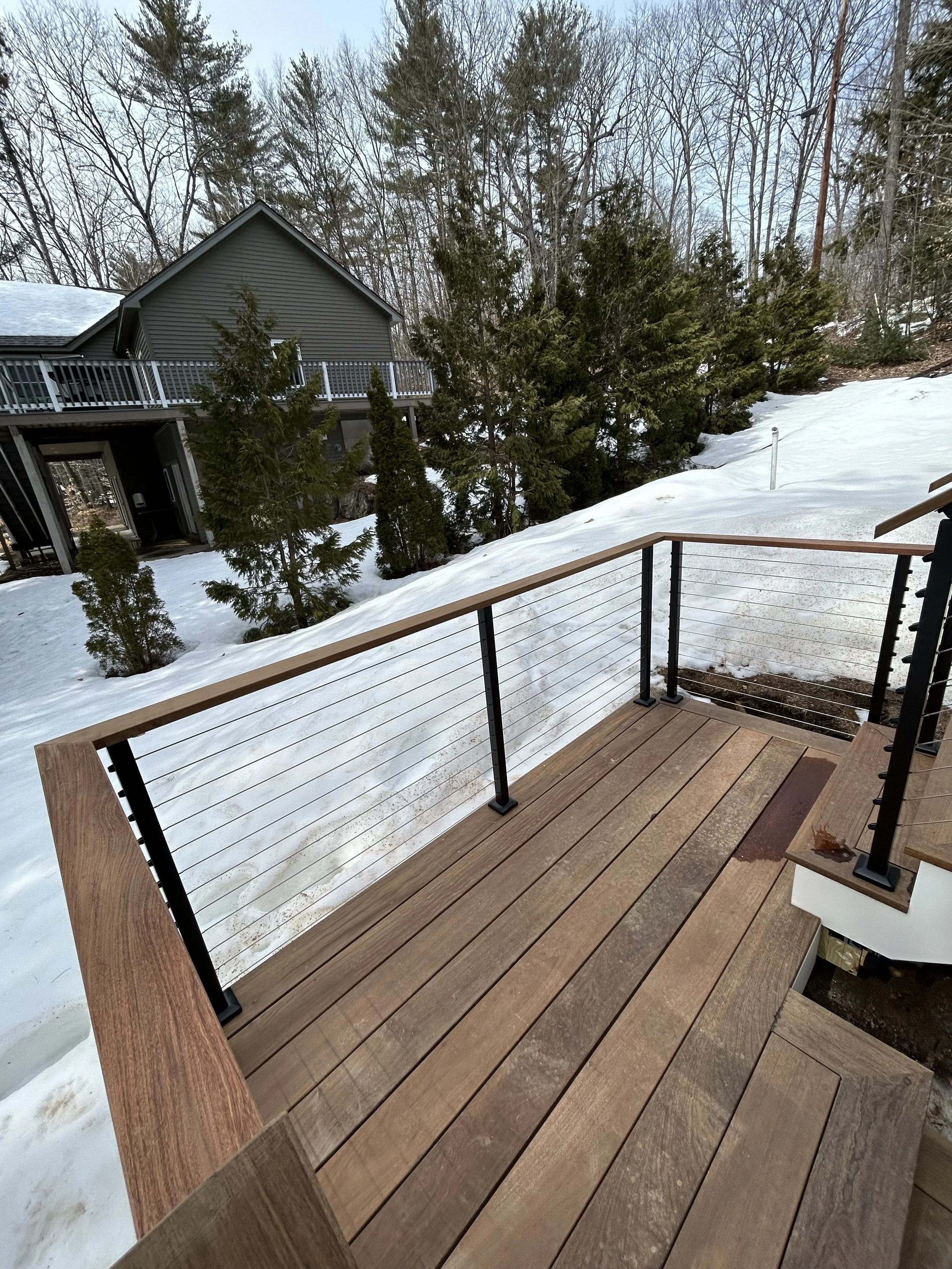 Lower Landing - Ipe Decking, Black Aluminum Posts and cable rails